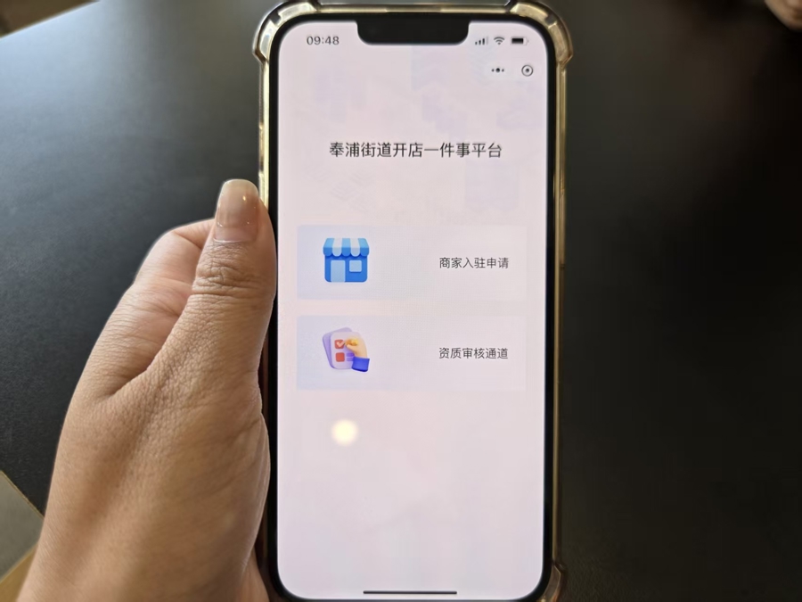 这一变化得益于奉浦街道全市首创的“开店一件事”服务。该举措依托街道城管服务站设立的“全生命周期服务平台”,扫一扫商铺码进入“我要开店”小程序,完成信息登记,即可实现跨部门协同、数据共享和上门服务,真正实现商户开办业务“零跑动”。