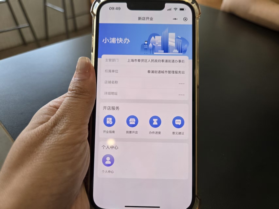 相关部门想到了“商铺码”。今年初,奉贤区在全市首创“商铺码”,商户通过扫码即可使用“明厨亮灶”、外摆申报等事项。这为奉浦街道实现“零跑动’”提供了新思路——能不能把城管服务站的功能也搬到线上,让商户彻底不用跑?