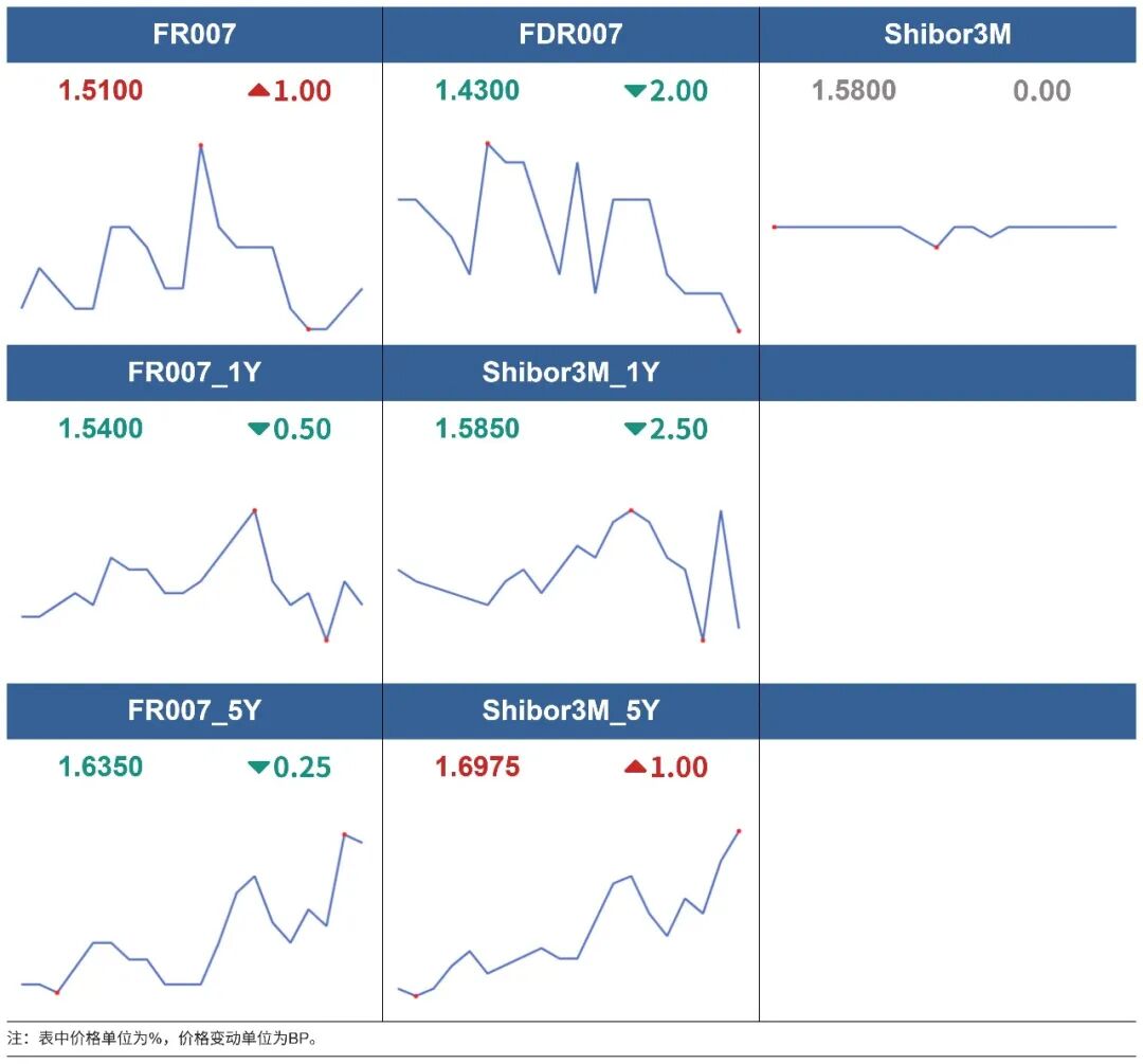 隔夜、1个月、3个月Shibor分别报1.301%、1.52%和1.58%,分别较前下行0.1BP、持平和持平。